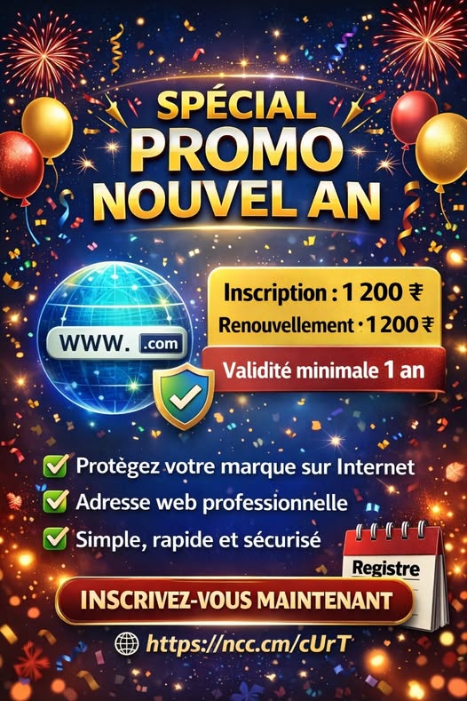 🎉✨ Spécial Promo Nouvel An – Enregistrez Votre Nom de Domaine ! ✨🎉
