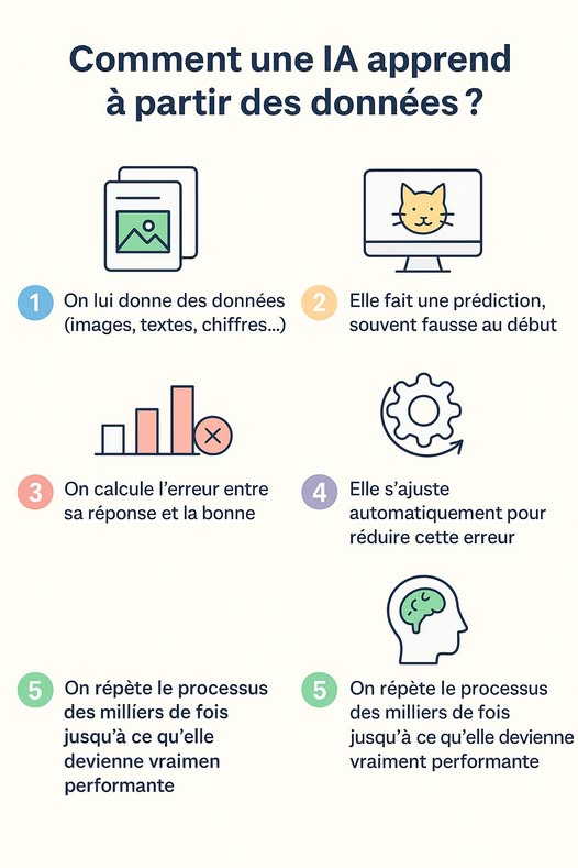 👉 Elle apprend à reconnaître des motifs, des tendances et des probabilités dans les données.